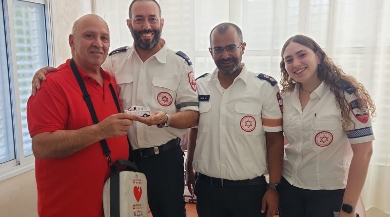 לאחר שלקה בדום לב והתמוטט בבת ים: הגופ נפגש עם צוות מד"א שהצילו את חייו.
