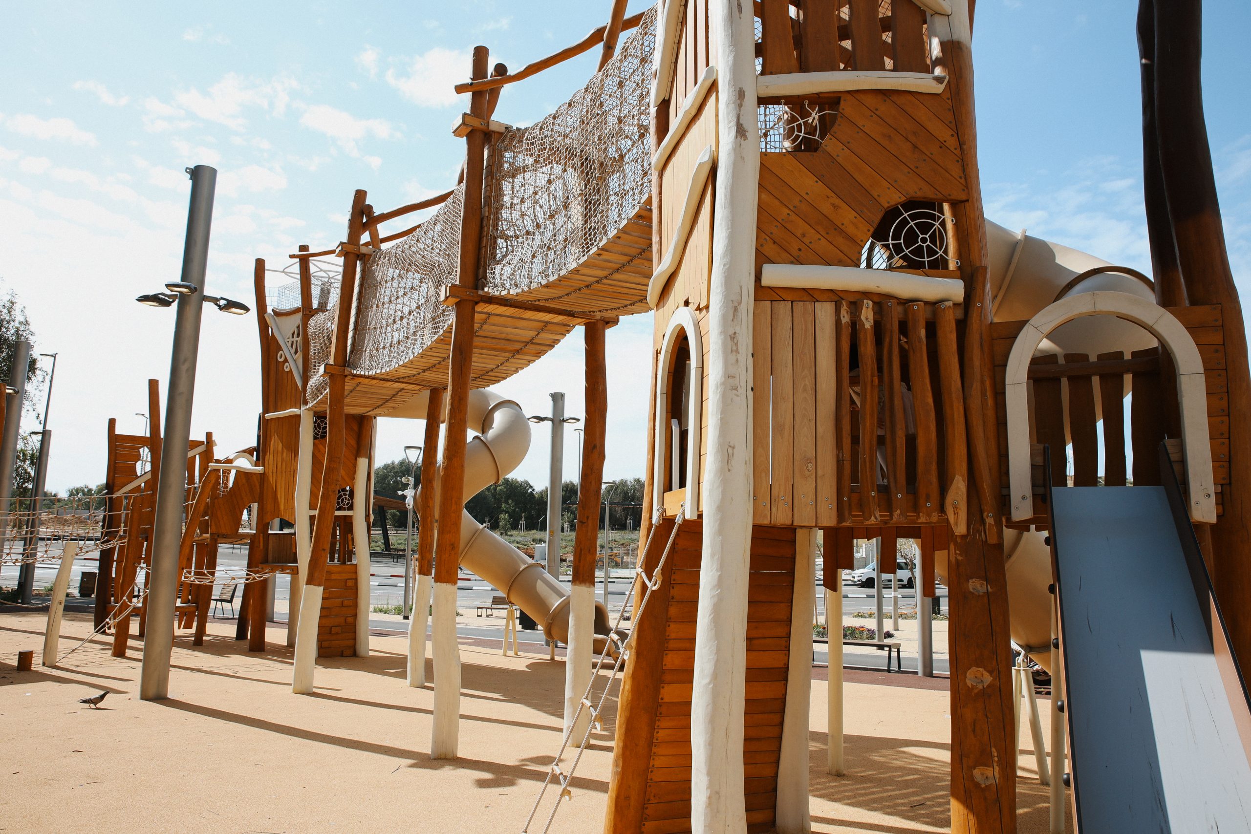 במקום הוקמו מתקני משחק מודרניים מעץ, המותאמים למגוון גילאים, לצד ספסלים, פינות ישיבה, מתקני אופניים, ברזיות ותשתיות נלוות. הפארק תוכנן תוך הקפדה על נגישות מלאה, כך שגם אנשים עם מוגבלויות יוכלו ליהנות ממנו באופן שוויוני ובטוח.